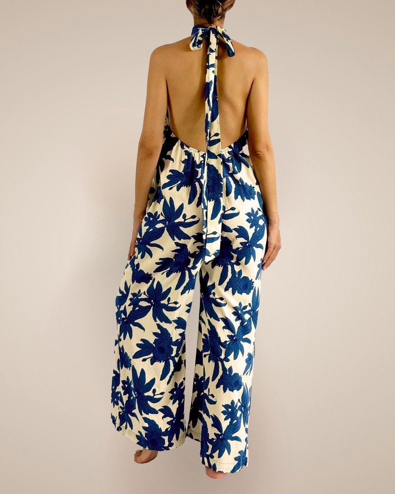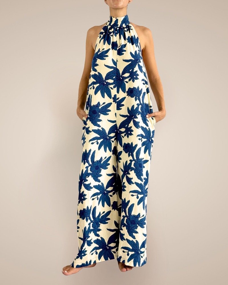 Es una prenda creada para cualquier ocasión, de silueta suelta. Cuello halter y corte amplio en la bota. Perfecta para usar con diferentes complementos o viajes por su diseño liviano y versátil.