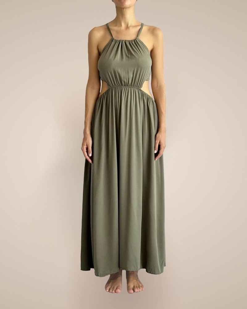 Es una prenda creada para cualquier ocasión, con ajuste en la cintura y cortes asimétricos. Perfecta para usar con diferentes complementos o viajes por su diseño liviano y versátil.